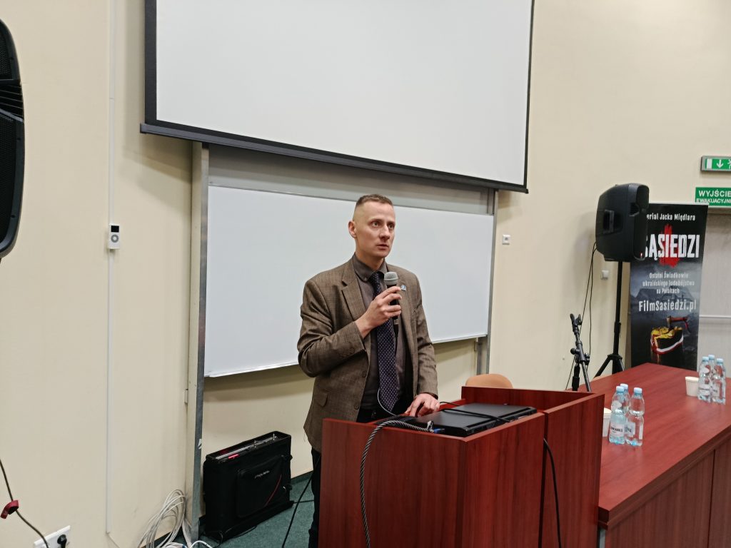 W środę, 11 marca, w murach Wyższej Szkoły Administracji Publicznej w Ostrołęce odbyło się spotkanie autorskie połączone z pokazem dwóch pierwszych odcinków serialu dokumentalnego „Sąsiedzi. Preludium Genocidum Atrox”. Głównym gościem wydarzenia był autor produkcji, Jacek Międlar.